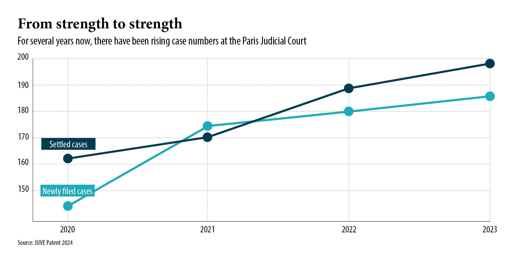 Although the judicial ranks of the 3rd Chamber were partly understaffed, France’s IP judges again concluded more cases than in the previous year. In 2022, the judges concluded 188 proceedings by judgment, withdrawal or settlement. However, in 2023, this number rose to 198. At the end of 2023, 203 patent disputes remained pending.